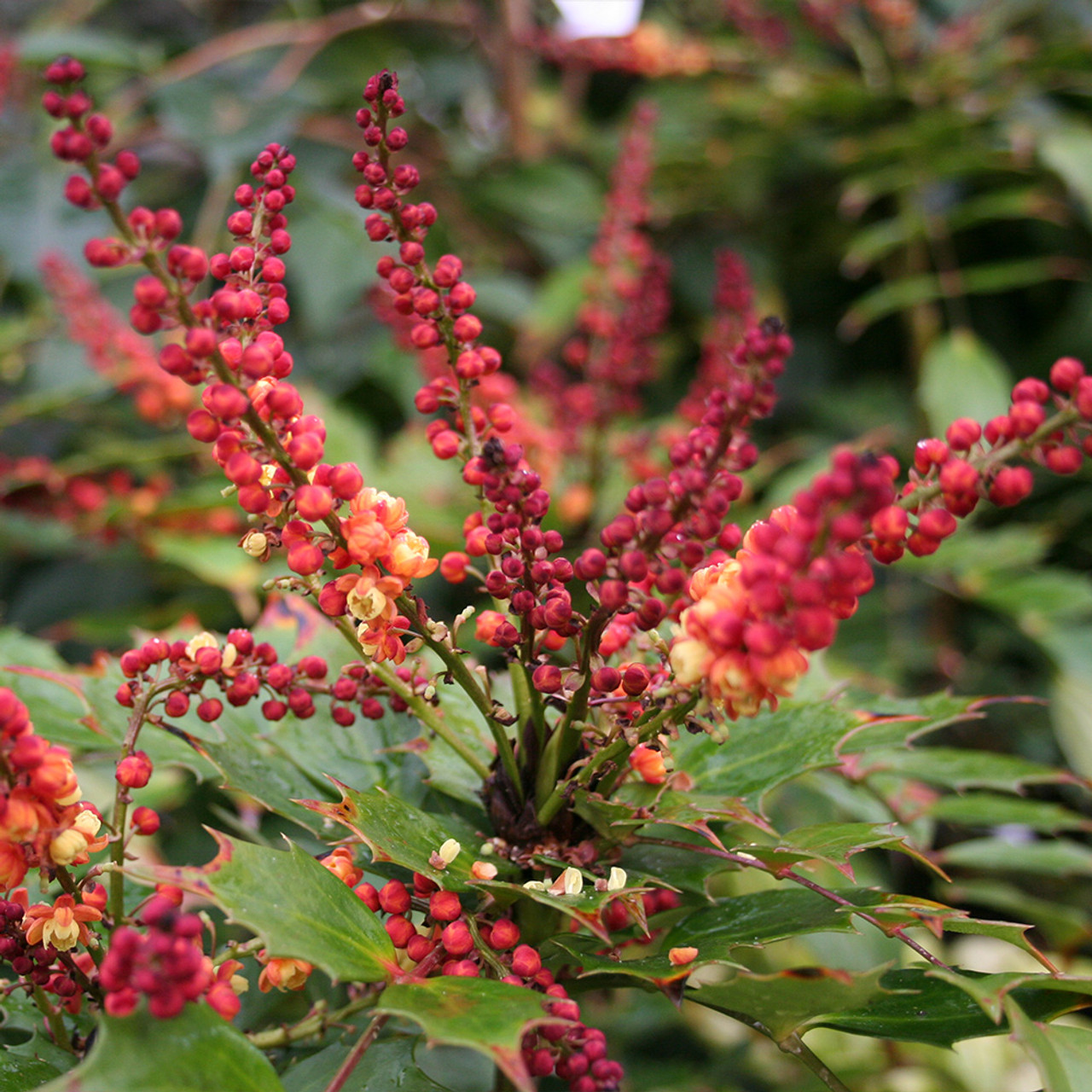 여름에서 가을까지 피는 오렌지, 레드의 이국적인 꽃, 윤이 나는 잎, 꽃이 진 후 열리는 푸르스름한 회색 열매가 아름답습니다.