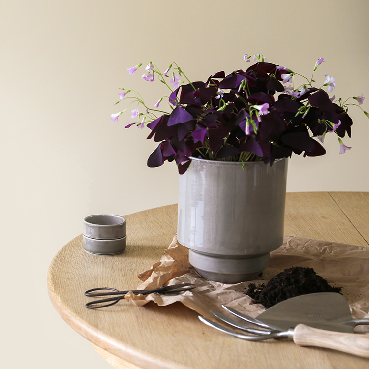 자연 점토 화분과 수작업으로 제작한 원통형 받침을 감미로운 시그니처 글레이즈와 매치하면 디자인의 견고함을 완성할 수 있습니다.