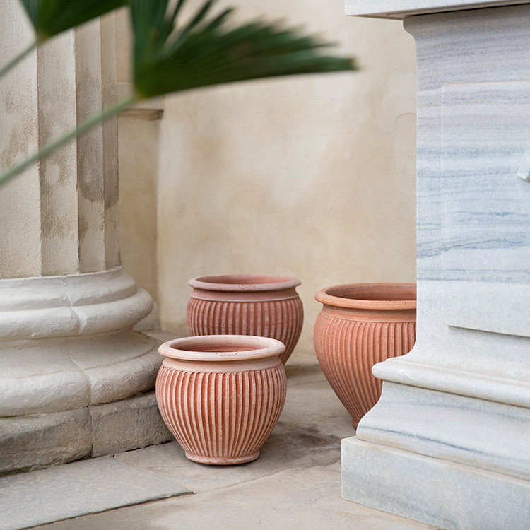 대형 야외 화분은 스칸디나비아에서 디자인되었으며 투스카니에서 수작업으로 제작되었습니다.