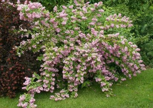 난형의 녹색 잎을 가진 덤불 같은 중간 크기의 낙엽 관목입니다.