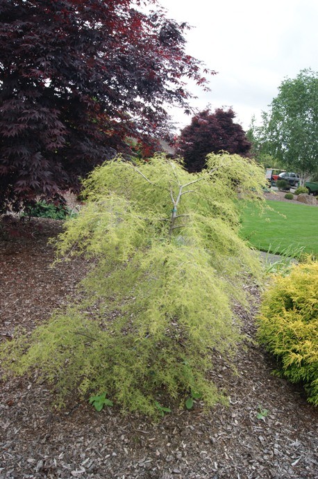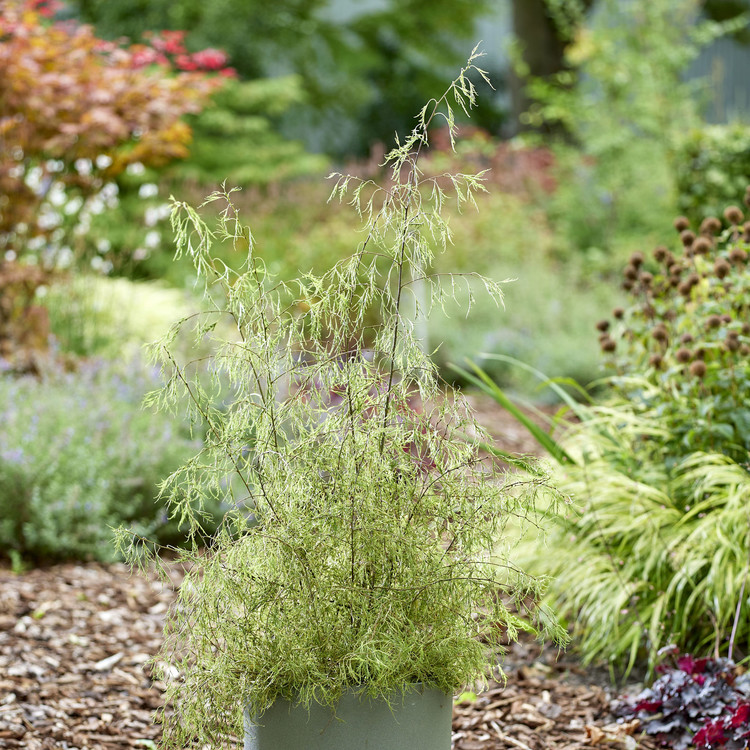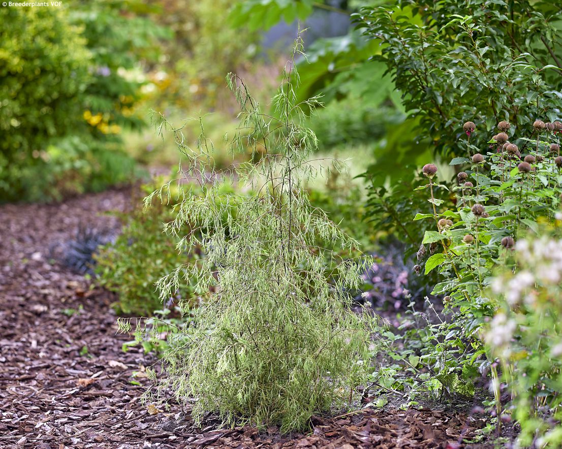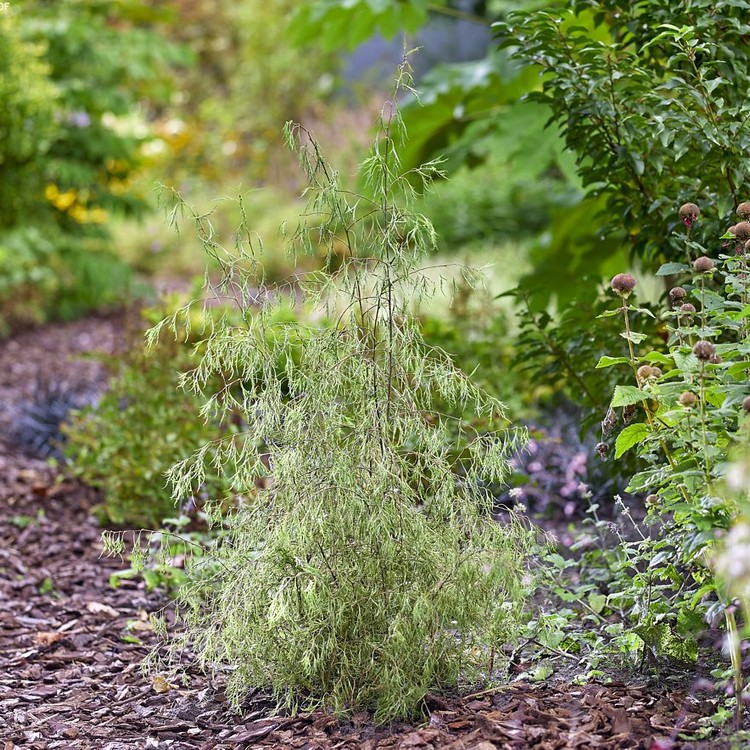 터키의 카라차 수목원에서 선발된 품종으로, 실처럼 가늘게 갈라진 잎과 아래로 늘어지는 수형이 결합되어 극도의 우아함을 보여주는 낙엽 소교목입니다.