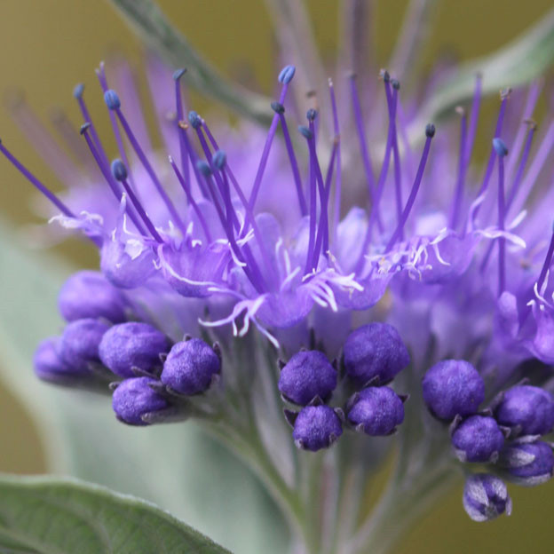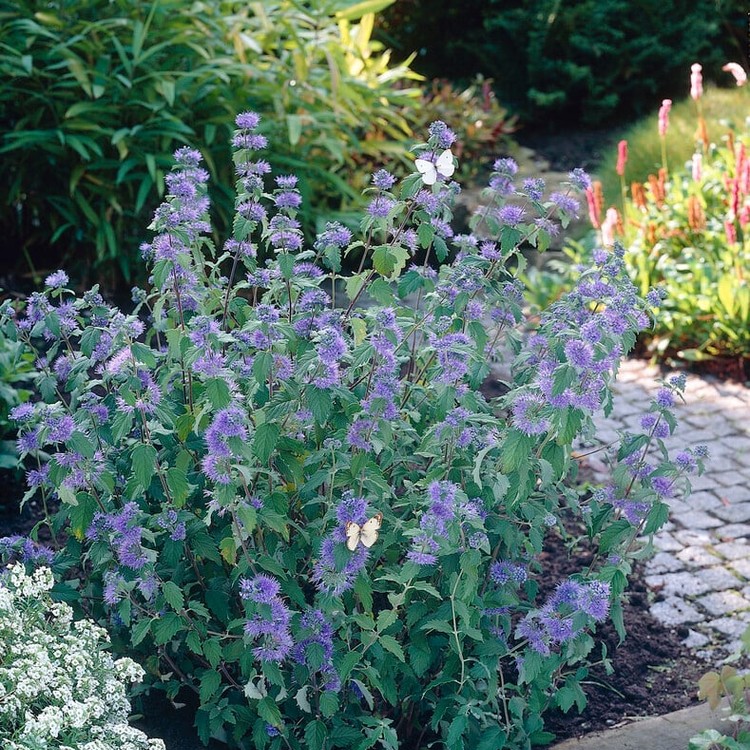 늦여름부터 가을까지 정원에 흔치 않은 강렬한 청색을 선사하는 낙엽 소관목입니다. 유럽의 늦여름 보더 정원에서 라벤더가 진 후 그 자리를 이어받는 '블루 가든'의 핵심 수종으로, 꽃뿐만 아니라 잎에서도 향기가 나는 매력적인 식물입니다. 둥글고 콤팩트한 덤불 형태를 유지하며 자라기 때문에 소규모 정원이나 화단 앞부분에 배치하기 적합합니다. |