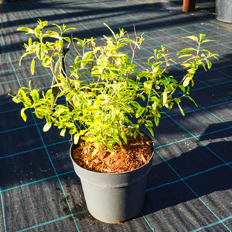 잎 가장자리에 선명한 황금색 테두리가 둘러진 화려한 무늬종입니다. 층꽃나무 특유의 청량한 꽃색과 잎의 황금빛 대비가 일품이며, 개화 전에도 잎 자체의 관상 가치가 압도적이어서 봄부터 가을까지 정원을 밝게 유지해 주는 '컬러 리프'의 대표 주자입니다. 성장이 안정적이며, 무늬종임에도 불구하고 수세가 강해 기르기 수월합니다. 콤팩트한 수형을 유지하여 중소규모 정원의 중경 식재에 적합합니다. |