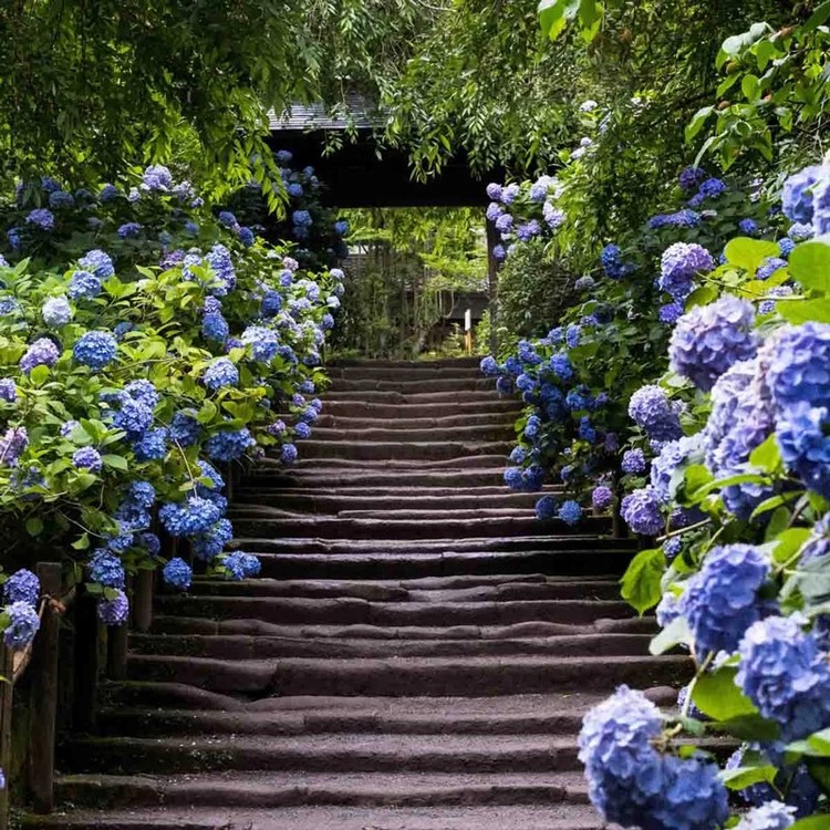 수국 하면 떠오르는 깊고 맑은 푸른색 꽃뭉치의 정석을 보여주며, 적절한 토양 환경만 갖춰진다면 초여름부터 한여름까지 정원을 시원한 바다 빛으로 물들입니다.