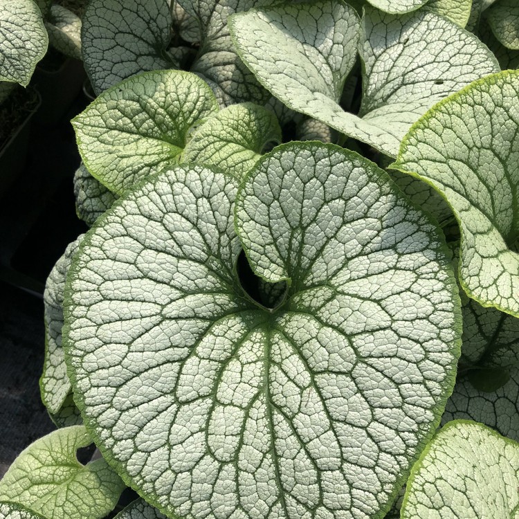 순은을 입힌 듯한 거대한 하트 모양의 잎이 압권인 품종입니다. 잎이 크고, 은색의 광택이 훨씬 강하며 면적이 넓어 그늘진 정원에서 마치 스스로 빛을 내는 듯한 착각을 불러일으킵니다. 초봄에는 물망초를 닮은 앙증맞은 푸른 꽃이 피어나고, 꽃이 진 뒤에는 압도적인 존재감의 잎이 여름과 가을 내내 정원의 중심을 잡아줍니다. |