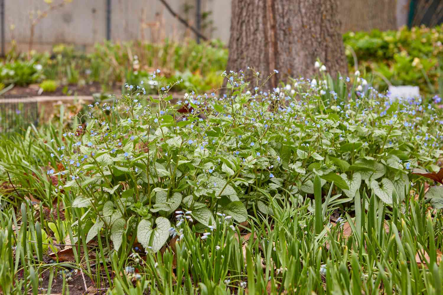초봄에는 물망초를 닮은 앙증맞은 푸른 꽃이 피어나고, 꽃이 진 뒤에는 압도적인 존재감의 잎이 여름과 가을 내내 정원의 중심을 잡아줍니다.