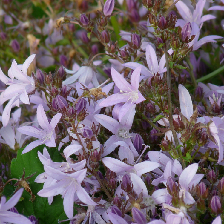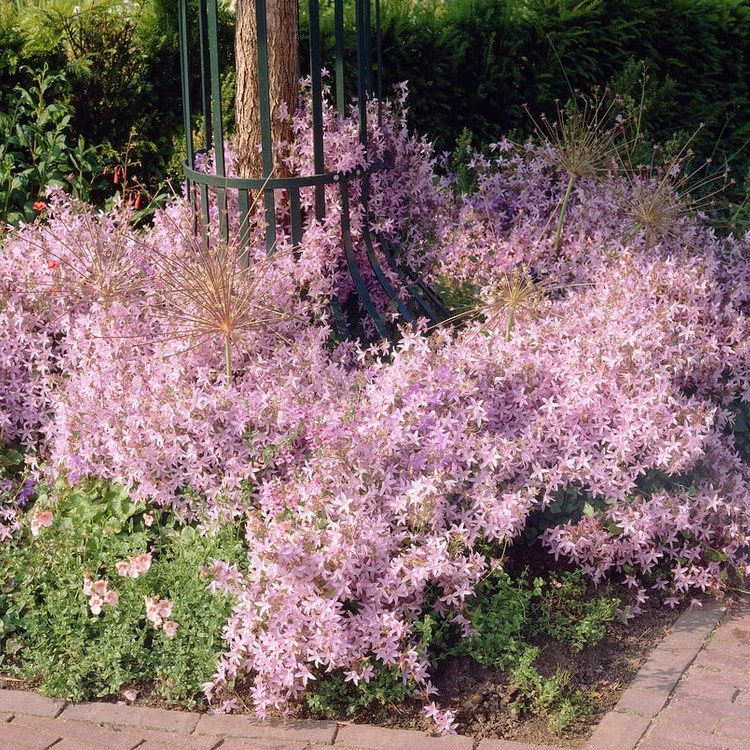 일반적인 캄파눌라들이 주로 청보라색을 띠는 것과 달리, 흔치 않은 라벤더 핑크 빛을 띠는 매우 특별한 품종입니다. 세르비아 캄파눌라 계열 특유의 강인한 생명력과 옆으로 번져나가는 성질을 그대로 가지고 있어, 지면을 덮거나 담장 위에서 흘러내리듯 연출하기에 최적입니다. 초여름 정원에 별 모양의 작은 꽃들이 쏟아질 듯 피어나는 모습은 보는 이의 감탄을 자아냅니다. |