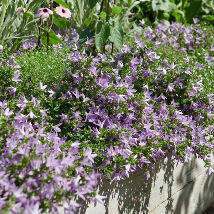 세르비아 캄파눌라 계열 특유의 강인한 생명력과 옆으로 번져나가는 성질을 그대로 가지고 있어, 지면을 덮거나 담장 위에서 흘러내리듯 연출하기에 최적입니다.
