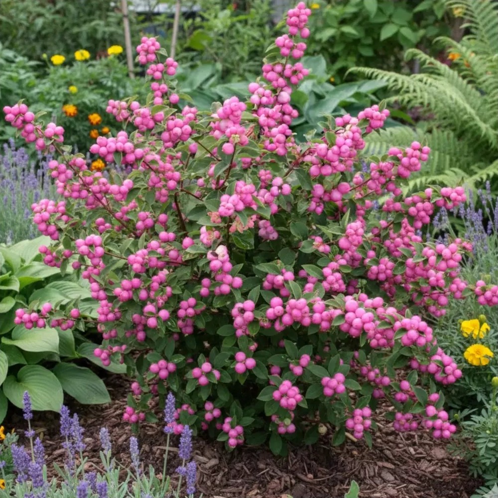 '진주'를 닮은 영롱한 열매가 매력적인 낙엽 관목입니다. 꽃이 귀해지는 늦여름부터 겨울까지, 가지마다 알알이 맺히는 분홍빛 열매는 마치 정원에 보석 목걸이를 걸어놓은 듯한 착각을 불러일으킵니다. 화려한 꽃보다 더 오래가는 '열매의 미학'을 보여주며, 쓸쓸해지기 쉬운 늦가을 정원에 생명력과 우아함을 더해주는 귀한 소재입니다. |