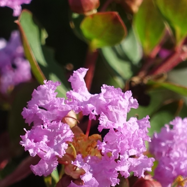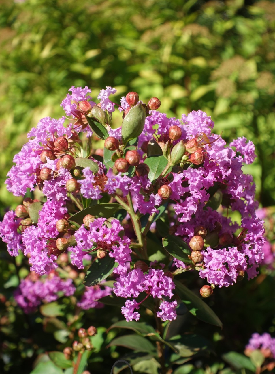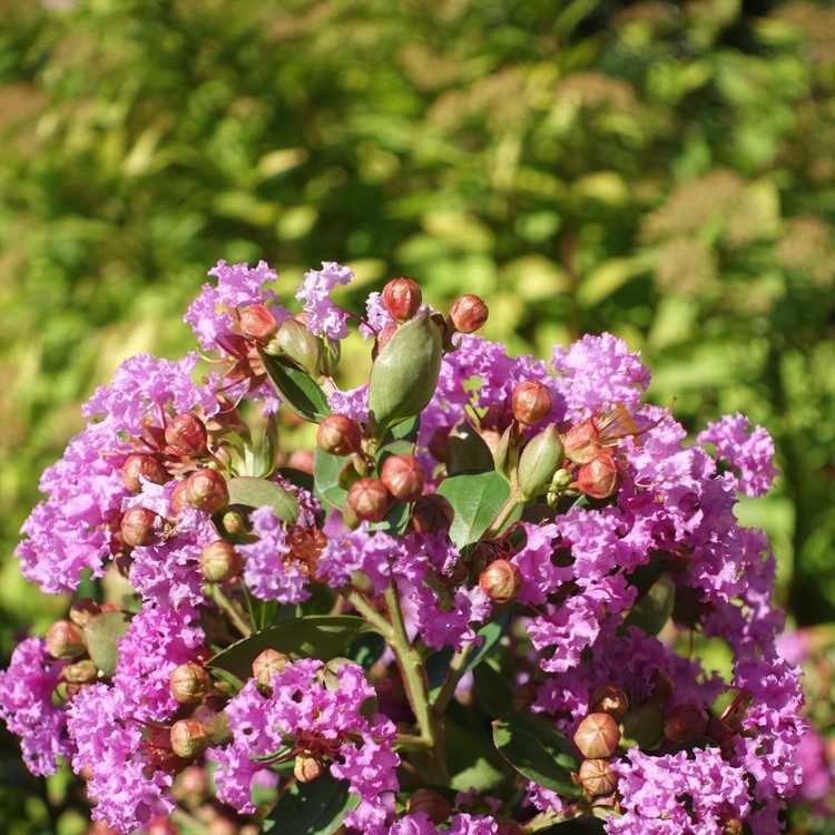 한여름부터 초가을까지 가지 끝에 진한 보라색 혹은 라벤더색 꽃뭉치가 화려하게 피어납니다. 꽃잎의 질감이 얇고 섬세하여 바람에 흔들릴 때 매우 서정적인 느낌을 줍니다.