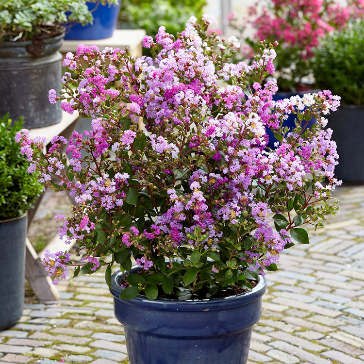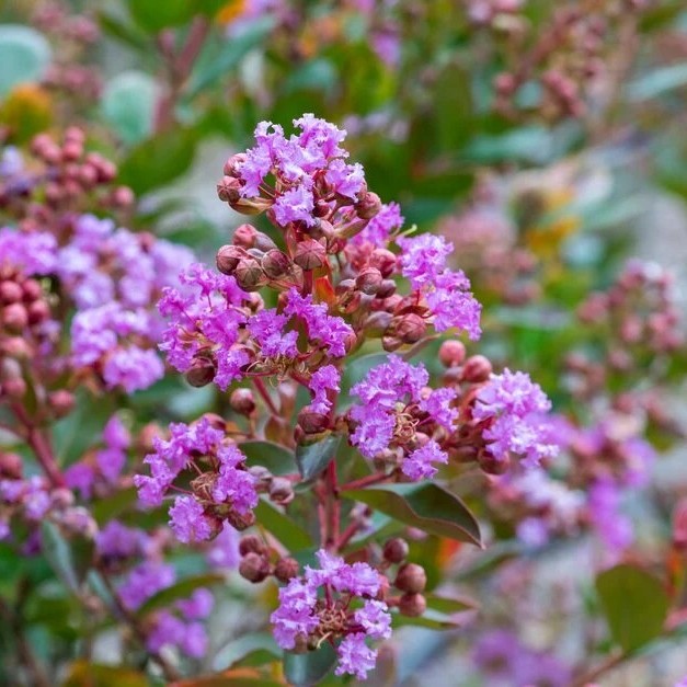 왜성 배롱나무 중에서도 가장 독특하고 우아한 보라색 꽃을 피우는 품종입니다. 기존 배롱나무에서는 보기 드문 깊고 풍부한 보랏빛 덕분에 '영원한 사랑'이라는 이름만큼이나 강렬한 인상을 남깁니다. 공간을 많이 차지하지 않는 컴팩트한 수형과 여름 내내 지속되는 개화 기간 덕분에, 작은 정원이나 화분에서도 고급스러운 분위기를 연출하고 싶어 하는 가드너들에게 최고의 선택지가 됩니다. |