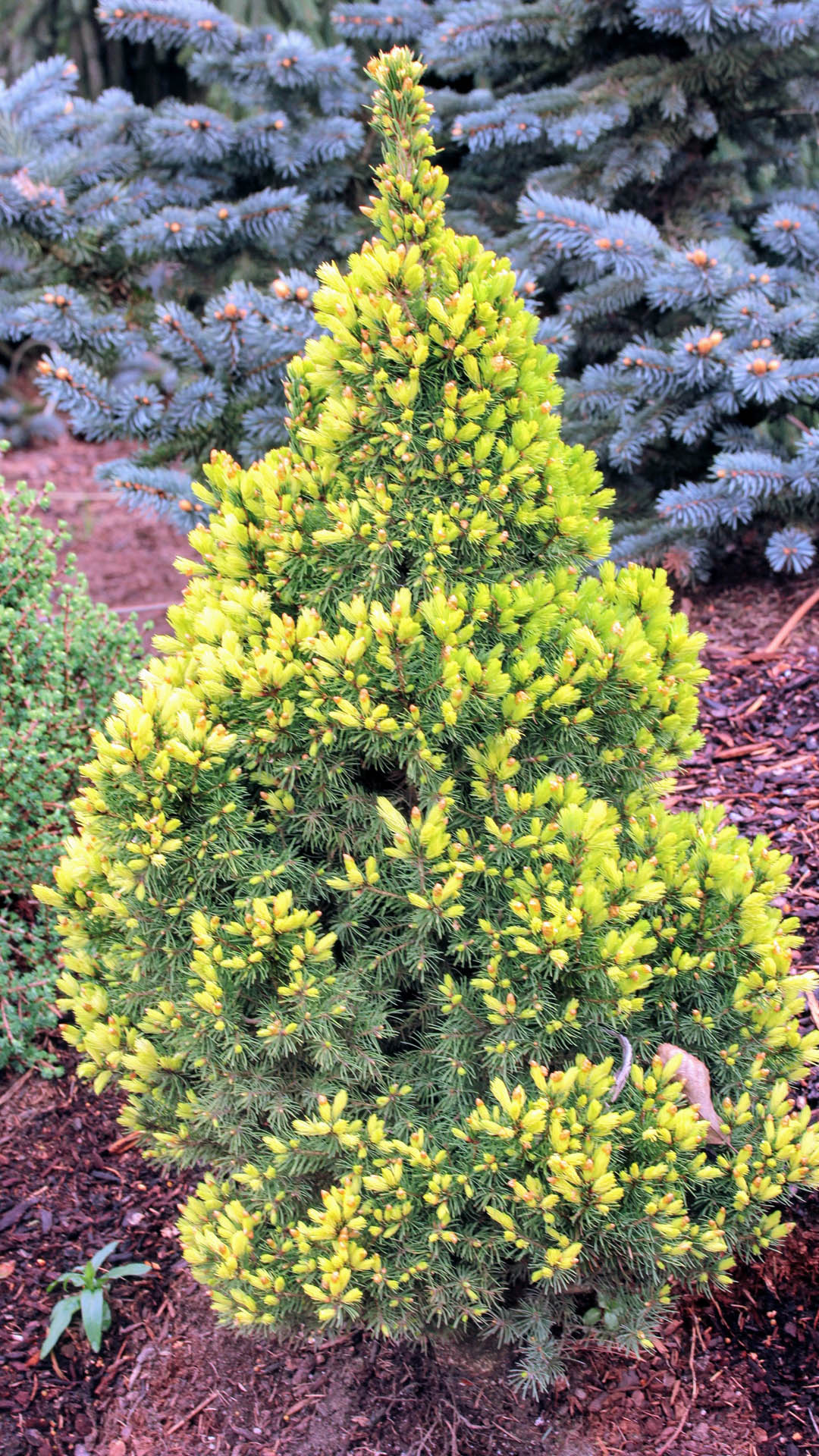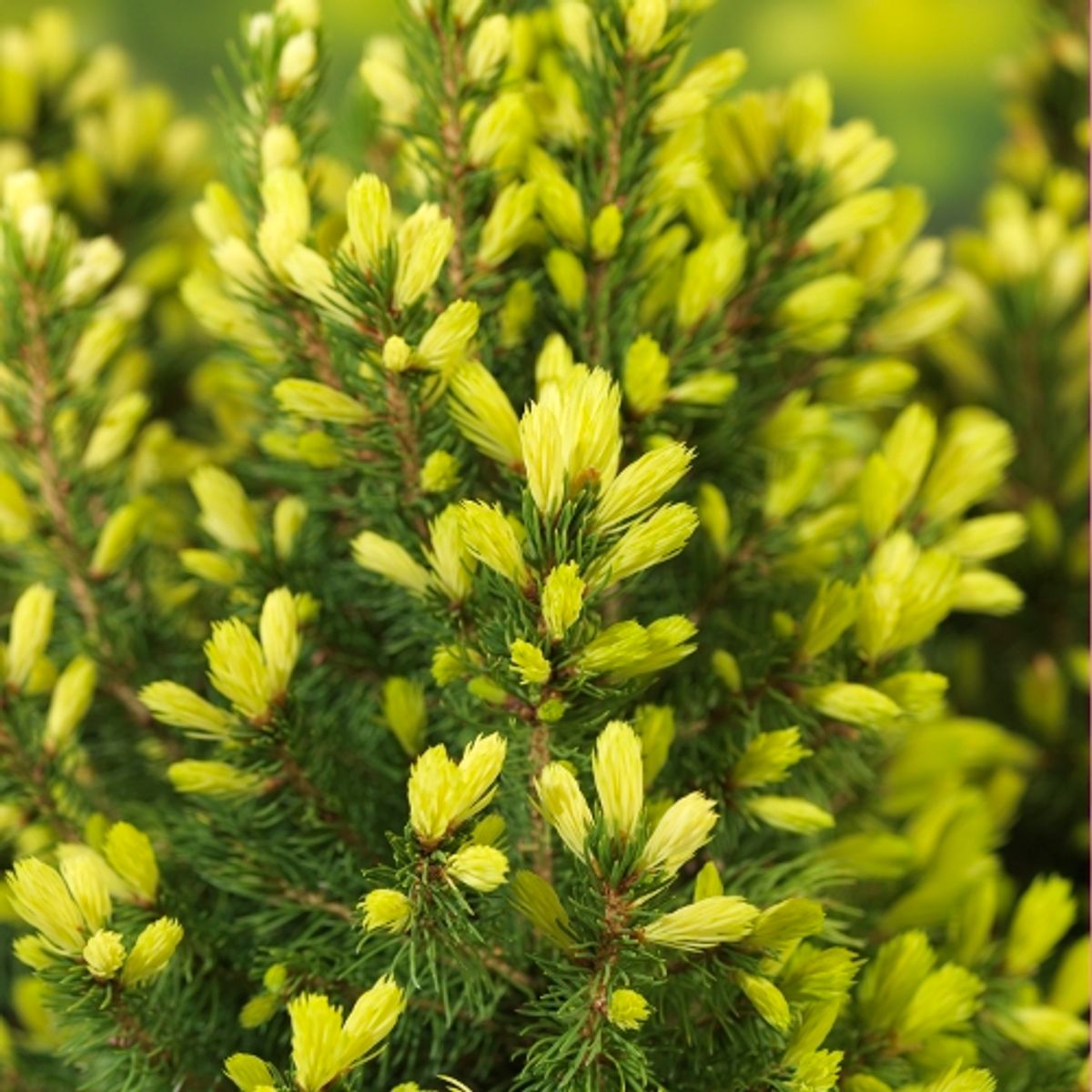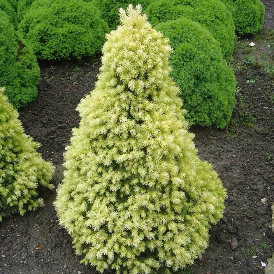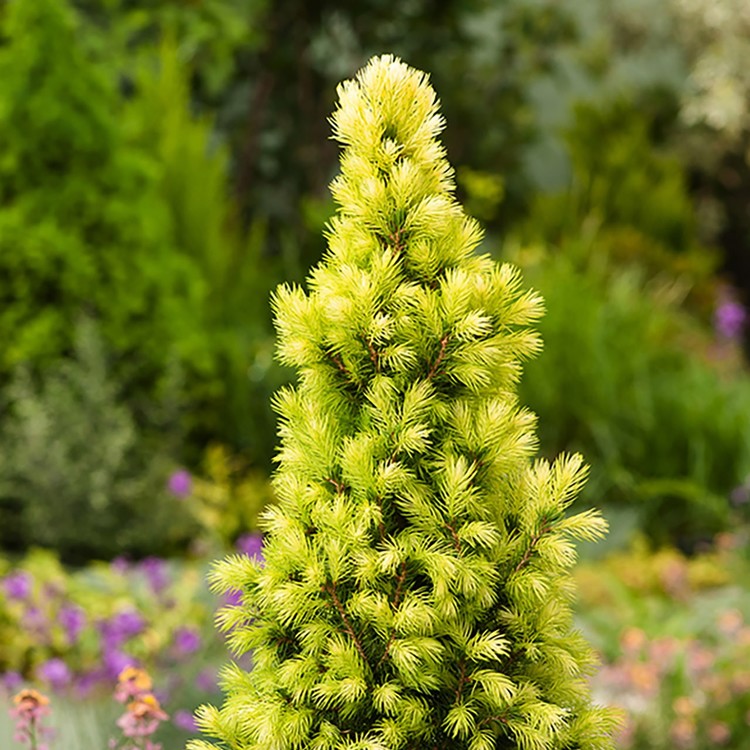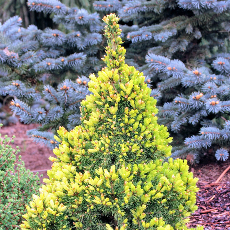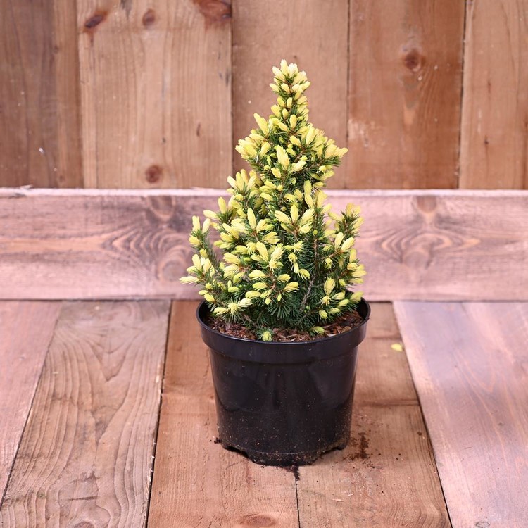 봄이 오면 정원에 '눈꽃'이 다시 내린 듯한 착각을 불러일으키는 아주 특별한 가문비나무입니다. 일반적인 왜성 가문비의 변이 품종으로, 봄에 새로 돋아나는 잎이 눈부신 크림색 또는 연한 노란색을 띠어 마치 나무 끝에 화사한 데이지 꽃이 핀 것 같다고 하여 이름 붙여졌으며, 독보적인 존재감을 뽐냅니다.
