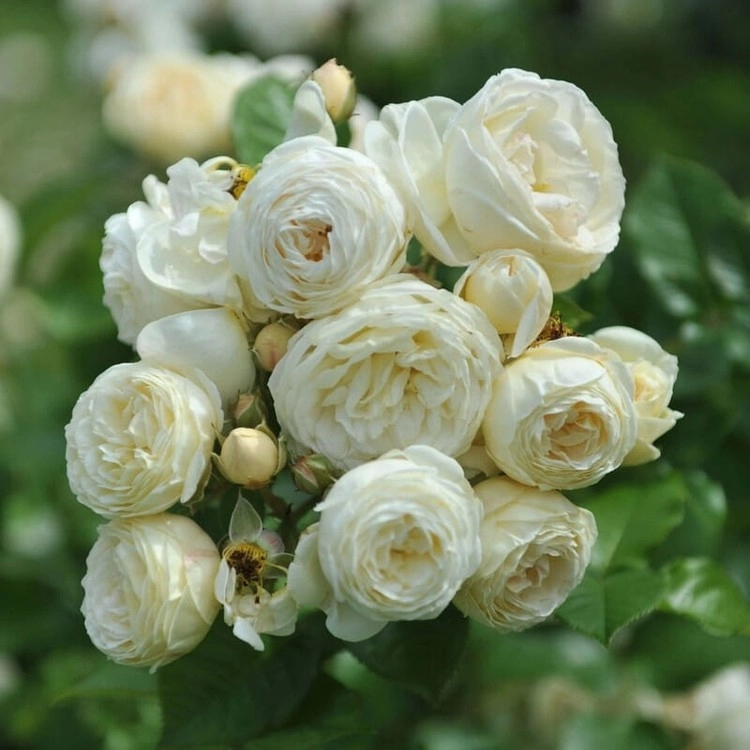 아르테미스(Artemis)는 맑은 크림 화이트 색상에 바깥 꽃잎이 옅은 그린빛을 띠는 앤틱한 구형(Globular) 화형이 특징인 품종입니다. 한 줄기에 여러 송이의 꽃이 풍성한 다발로 피어나며, 특유의 달콤하고 진한 아니스(Anise) 향기를 머금고 있어 로맨틱한 분위기를 연출합니다. 짙은 녹색의 잎은 윤기가 흐르고 병해충에 대한 저항성이 매우 뛰어나, 화단 식재나 생울타리, 대형 화분 등 다양한 조경 공간에 활용하기 탁월합니다.