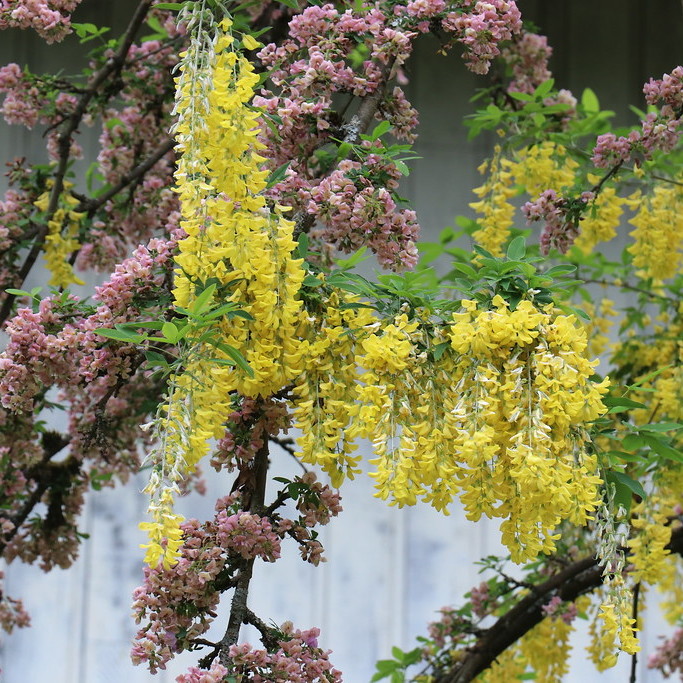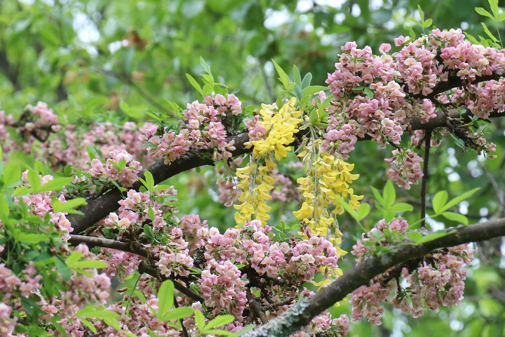 한 나무에서 노란색과 핑크색 꽃을 함께 감상할 수 있는 귀한 품종입니다.